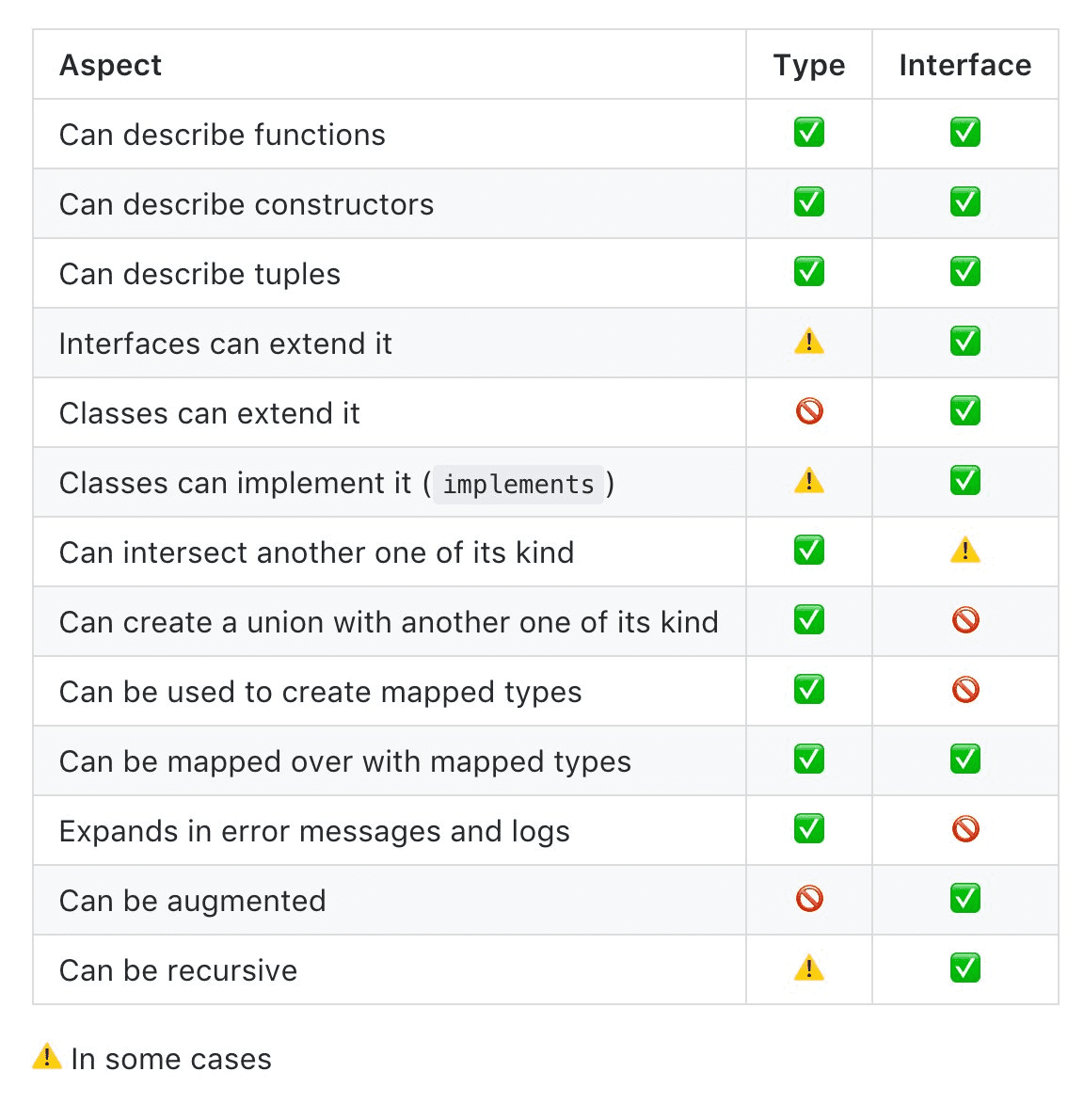 옛 버전에서는 interface와 type의 기능이 많이 차이가났지만, 현재에 와서는 거의 차이가없다.