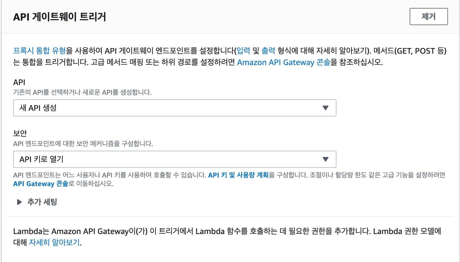 보안에 api 키로 열기 누르면 나중에 gateway api에서 사용하는 api-key가 저절로 생성된다.